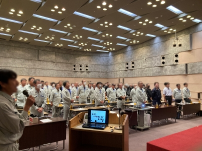 最後に、事故防止スローガン「安全の 一手間惜しまず 事故防止」を全員で唱和し、無事故・無違反の継続を誓って閉会しました。