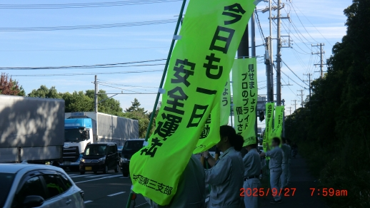 9月21日から9月30日にかけて実施される、秋の交通安全運動に合わせ、本社近くの交差点で立ち番を行いました。