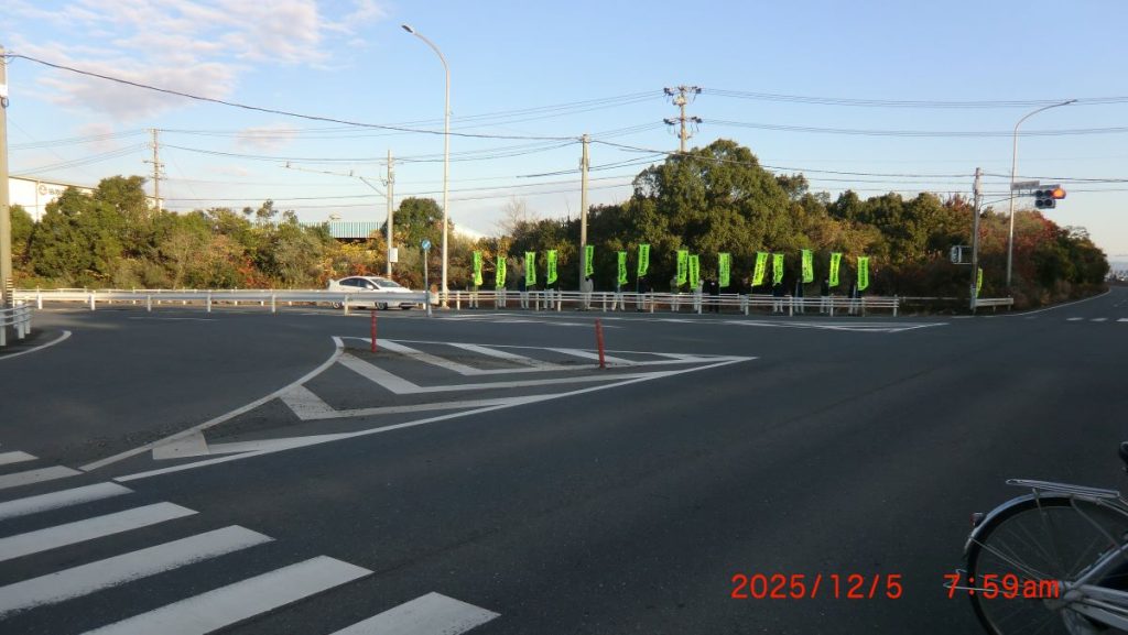 12月1日から12月10日にかけて実施される、年末の交通安全運動に合わせ、本社近くの交差点で立ち番を行いました。